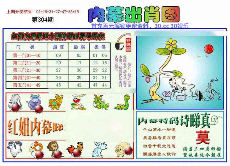 303期:天地两肖天肖+鸡鼠】开:兔15准